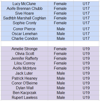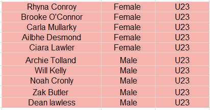 Irish Youth Squad selected members 2026